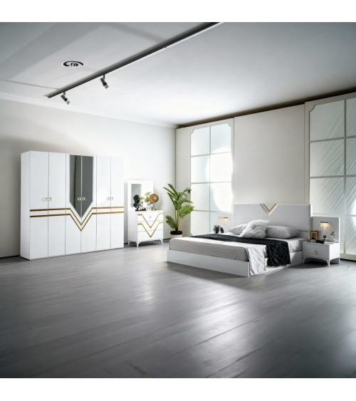Quick view Adauga la favorite Add to Compare Set dormitor COD101, Alb/Auriu, PAL, pat, sifonier cu oglinda, 2 noptiere, comoda cu oglinda 3.750,00 lei Adauga in cos