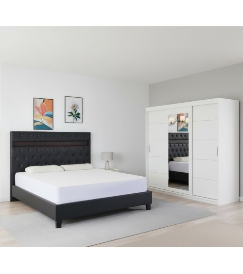 Quick view Adauga la favorite Add to Compare Set Dormitor Porto, pat tapitat Negru cu Led 160x200cm, dulap Alb 250cm lungime si saltea 160x200cm inclusa 4.300,00 lei Pat cu LED: 160X200 cm Dulap: 250X208X60cm Patul este echipat cu un sistem de iluminare LED disponibil în mai multe culorile, controlat... Adauga in cos