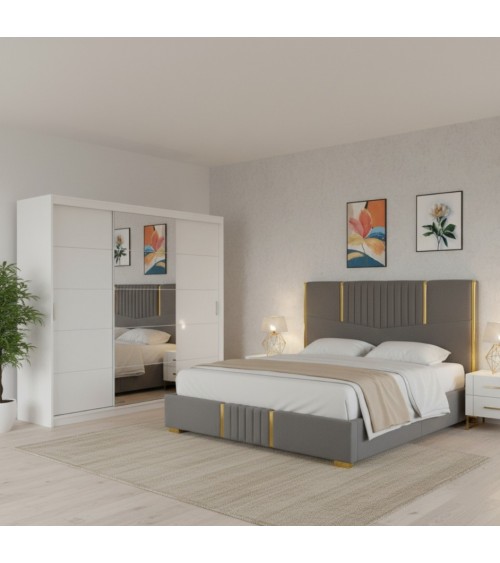 Quick view Adauga la favorite Add to Compare Set Dormitor Benny, pat tapitat Gri 160x200cm, dulap Alb 250cm lungime si saltea 160x200cm inclusa 4.400,00 lei Pat: 160X200 cm Dulap: 250X208X60cm Oferim transport gratuit oriunde in Romania in maxim 3-5 zile lucratoare. Se livreaza demontat, sigilat,... Adauga in cos