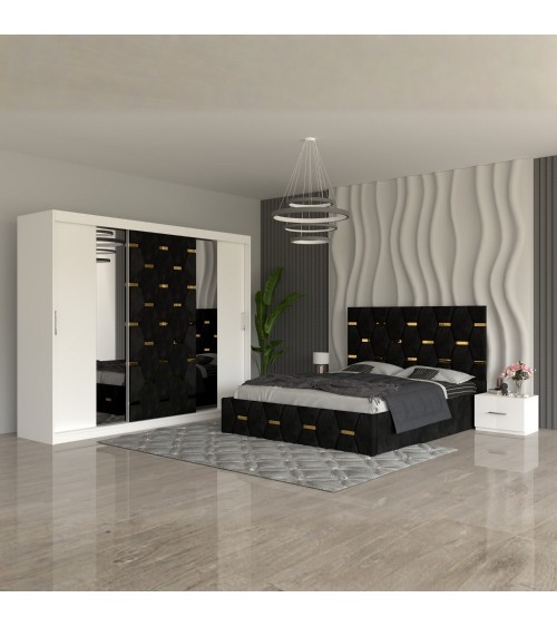 Quick view Adauga la favorite Add to Compare Set Dormitor Benny, pat tapitat Negru 160x200cm, dulap Alb 250cm lungime si saltea 160x200cm inclusa 4.400,00 lei Pat: 160X200 cm Dulap: 250X208X60cm Oferim transport gratuit oriunde in Romania in maxim 3-5 zile lucratoare. Se livreaza demontat, sigilat,... Adauga in cos