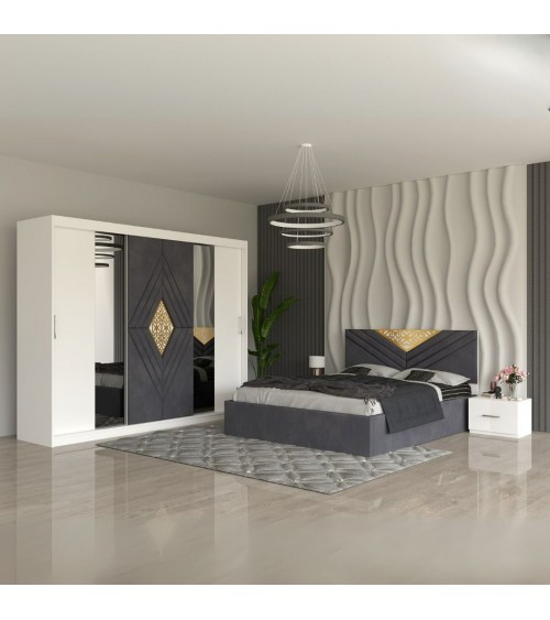 Quick view Adauga la favorite Add to Compare Set Dormitor Patrick, pat tapitat Crem 160x200cm, dulap Gri 250cm lungime si saltea 160x200cm inclusa 4.400,00 lei Pat: 160X200 cm Dulap: 250X208X60cm Oferim transport gratuit oriunde in Romania in maxim 3-5 zile lucratoare. Se livreaza demontat, sigilat,... Adauga in cos