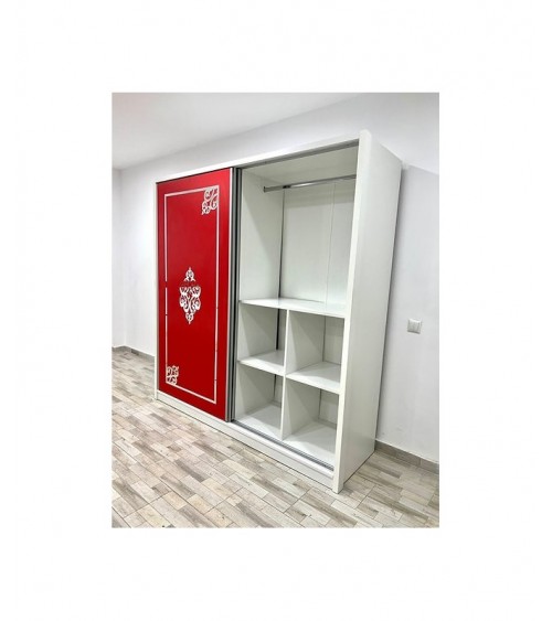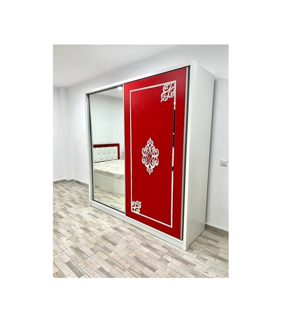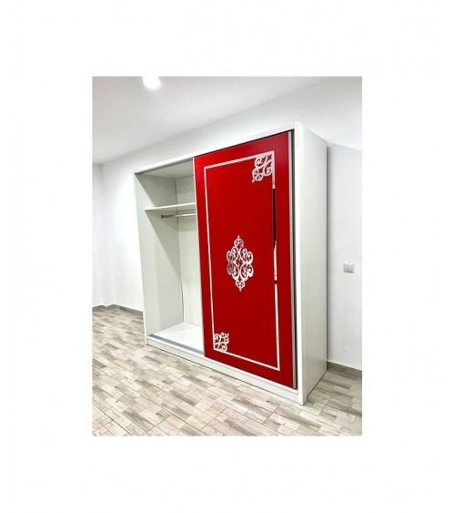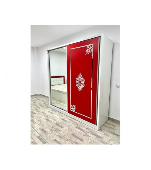 Dulap COD101, Alb/Roșu, Pal, 200x206x60 cm, Oglinda