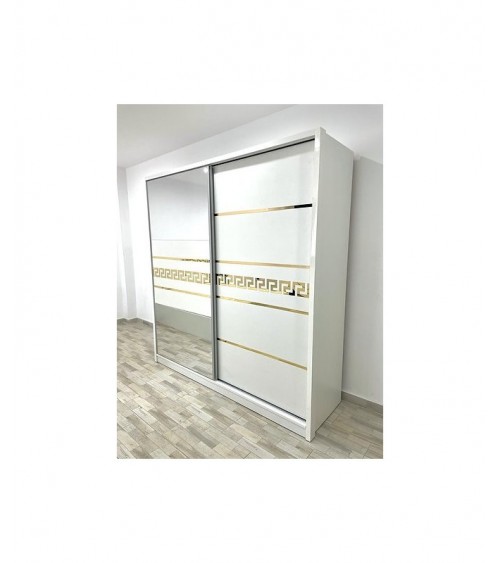 Dulap COD103, Alb/Auriu, Pal, Oglinda