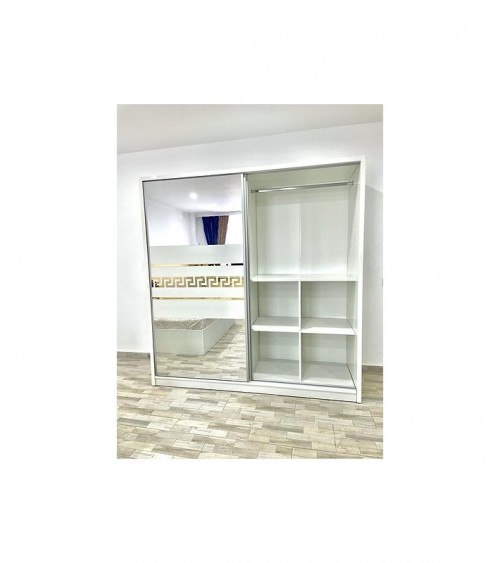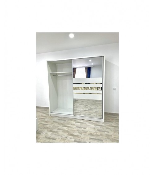 Cu cele două uși glisante, accesul la conținutul dulapului devine ușor și fără efort. Oglinda plasată strategic pe una dintre uși adaugă un element practic și estetic, permițându-ți să te vezi în întregime și să alegi cu atenție ținuta perfectă.