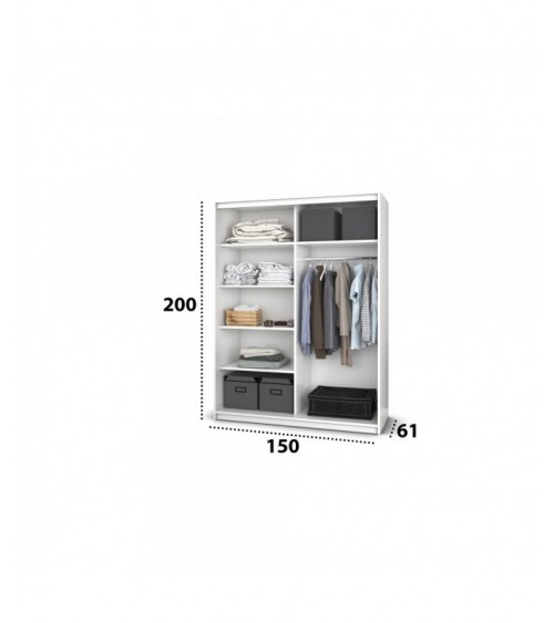 Adaugă eleganță și funcționalitate spațiului tău de depozitare cu dulapul DANTE. Cu dimensiunile sale impresionante de 150 cm lungime, 200 cm înălțime și 61 cm lățime, acest dulap cu 2 usi glisante îți oferă un spațiu generos pentru a-ți organiza hainele și accesoriile într-un mod eficient și stilat.
