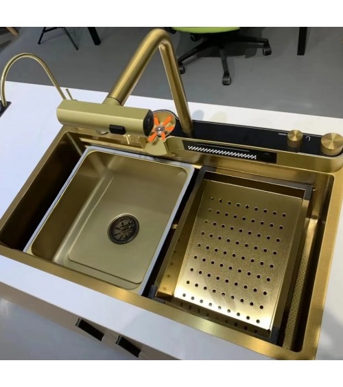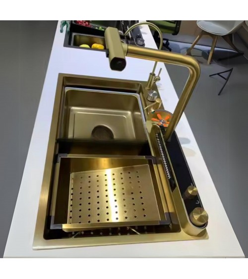 Chiuveta Multifunctionala Bucatarie W2, Toate Accesoriile incluse, Doua Functii Cascada, Gold, 75x46 cm