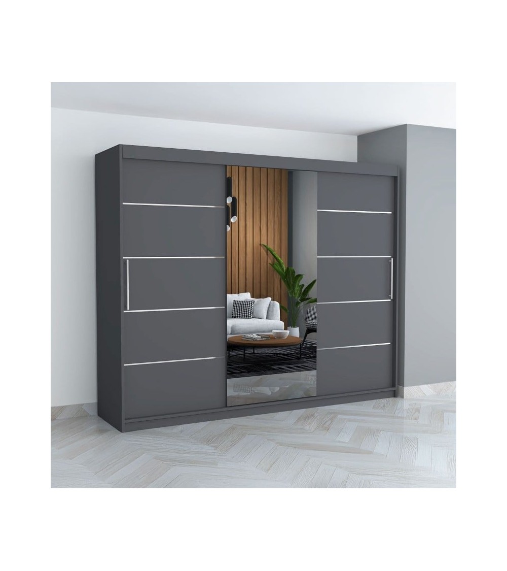 Dressing David Gri Cu Oglinda, Înălțime 200 cm , Latime 250 cm , Adâncime , 60 cm