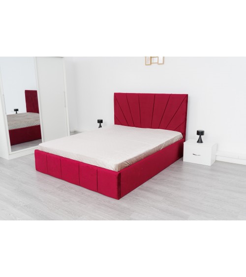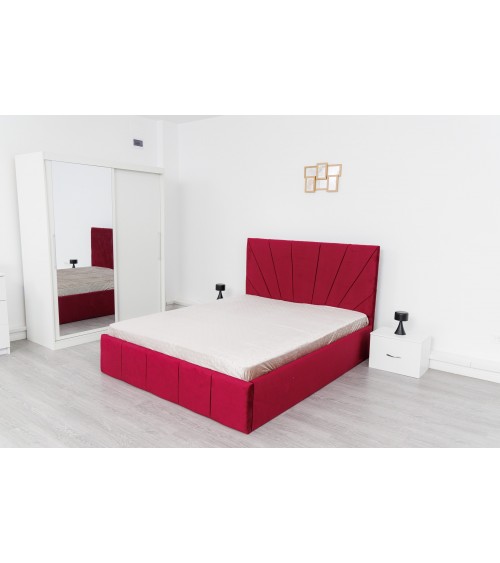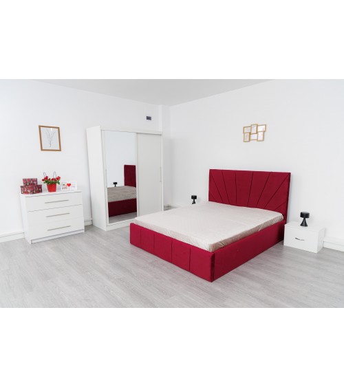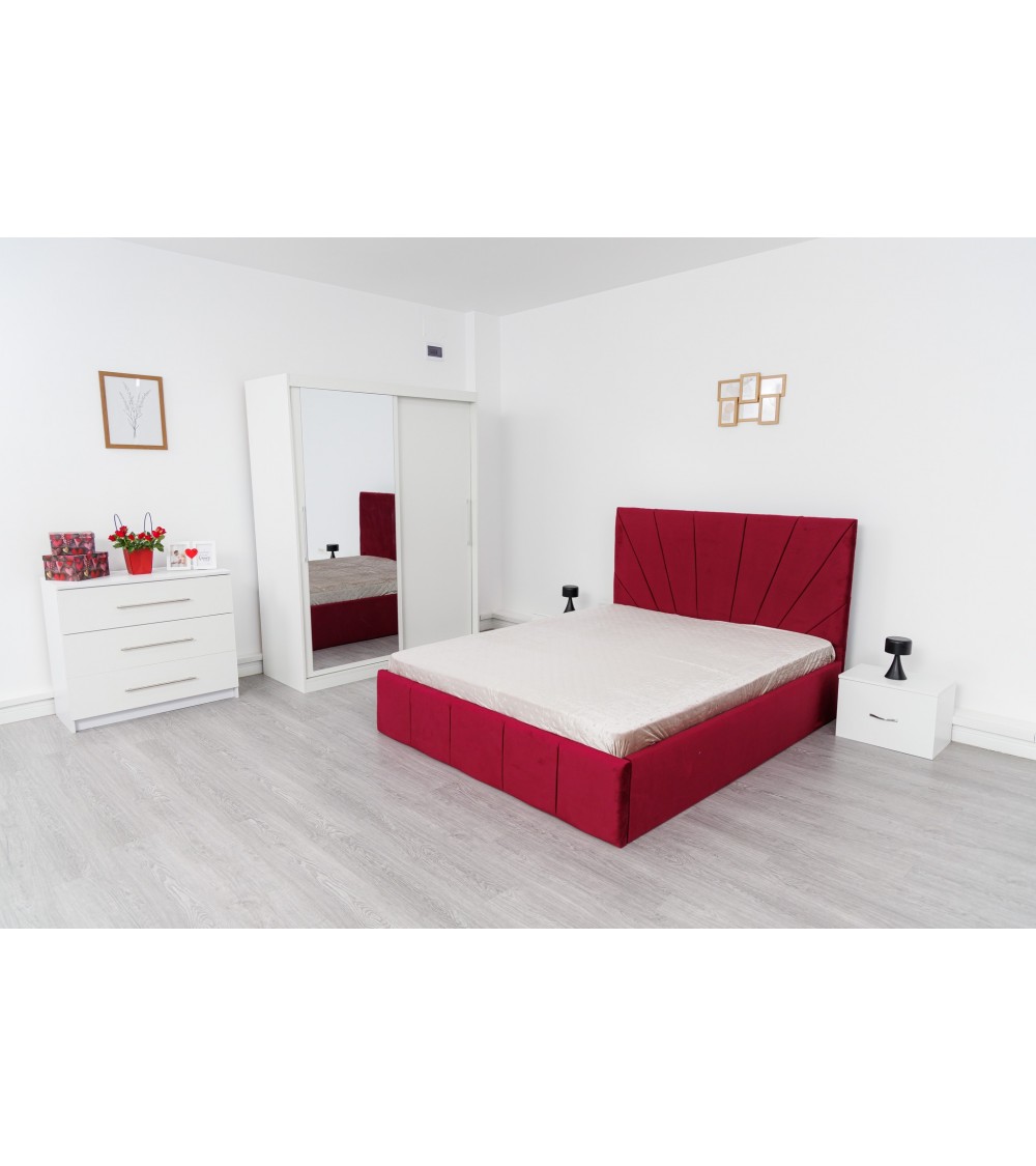 Set Dormitor Valencia, 5 Piese, Pat Complet Tapitat 160 X 200, Comoda, 2Noptiere, Dulap 2u glisante