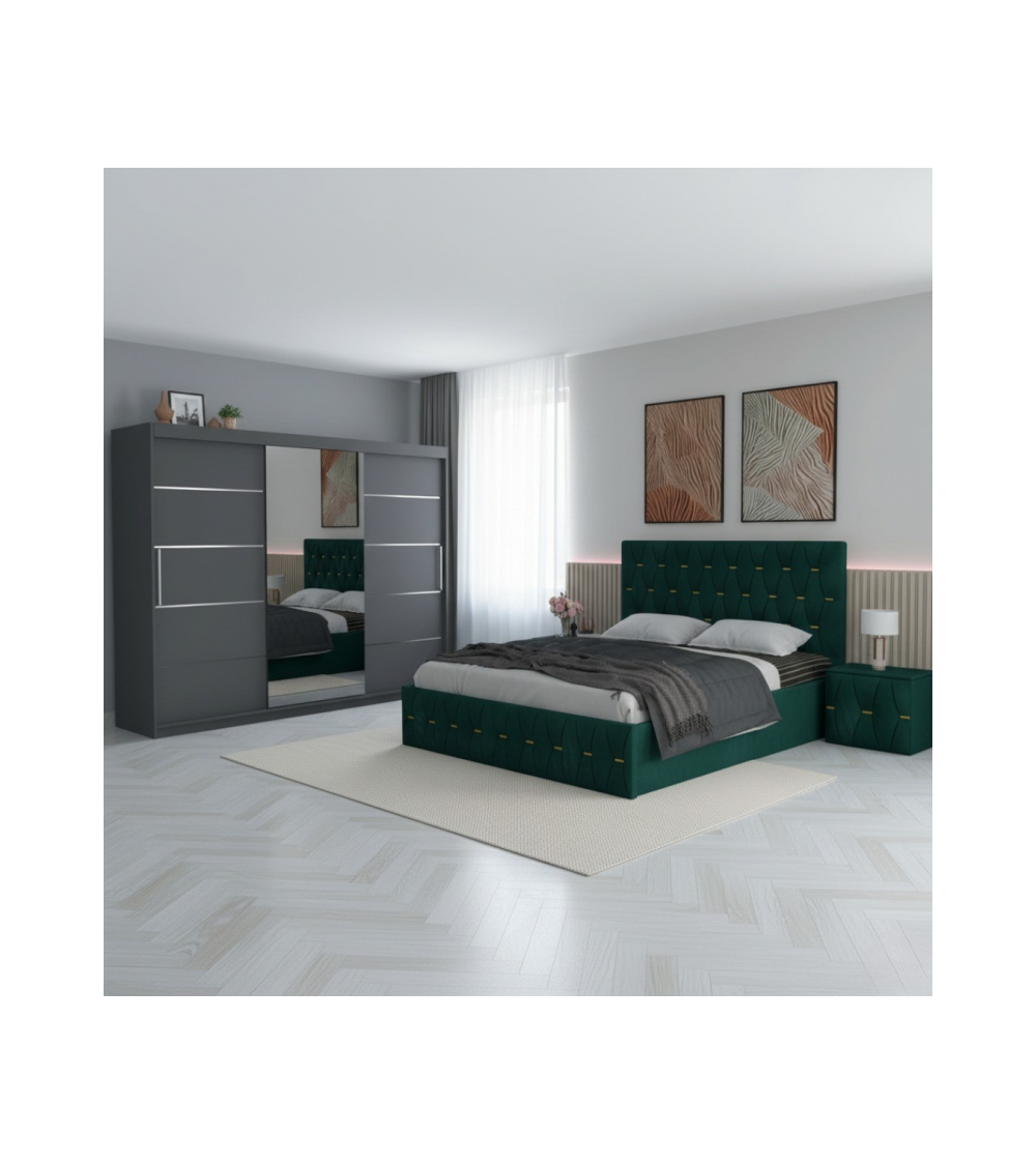 Set Dormitor David Gri cu Pat Eric Verde + Saltea 160x200cm