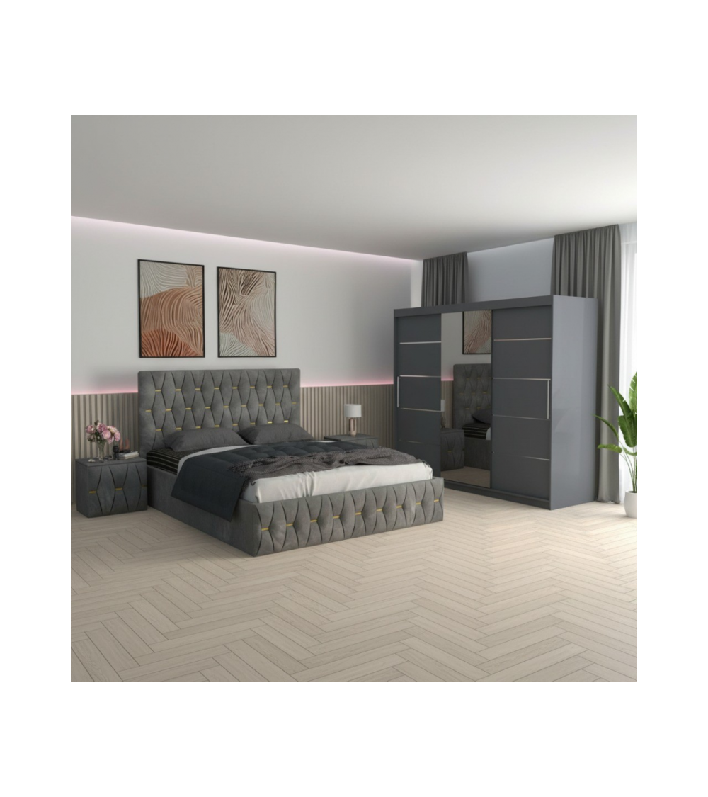 Set Dormitor David Gri cu Pat Eric Gri + Saltea 160x200cm