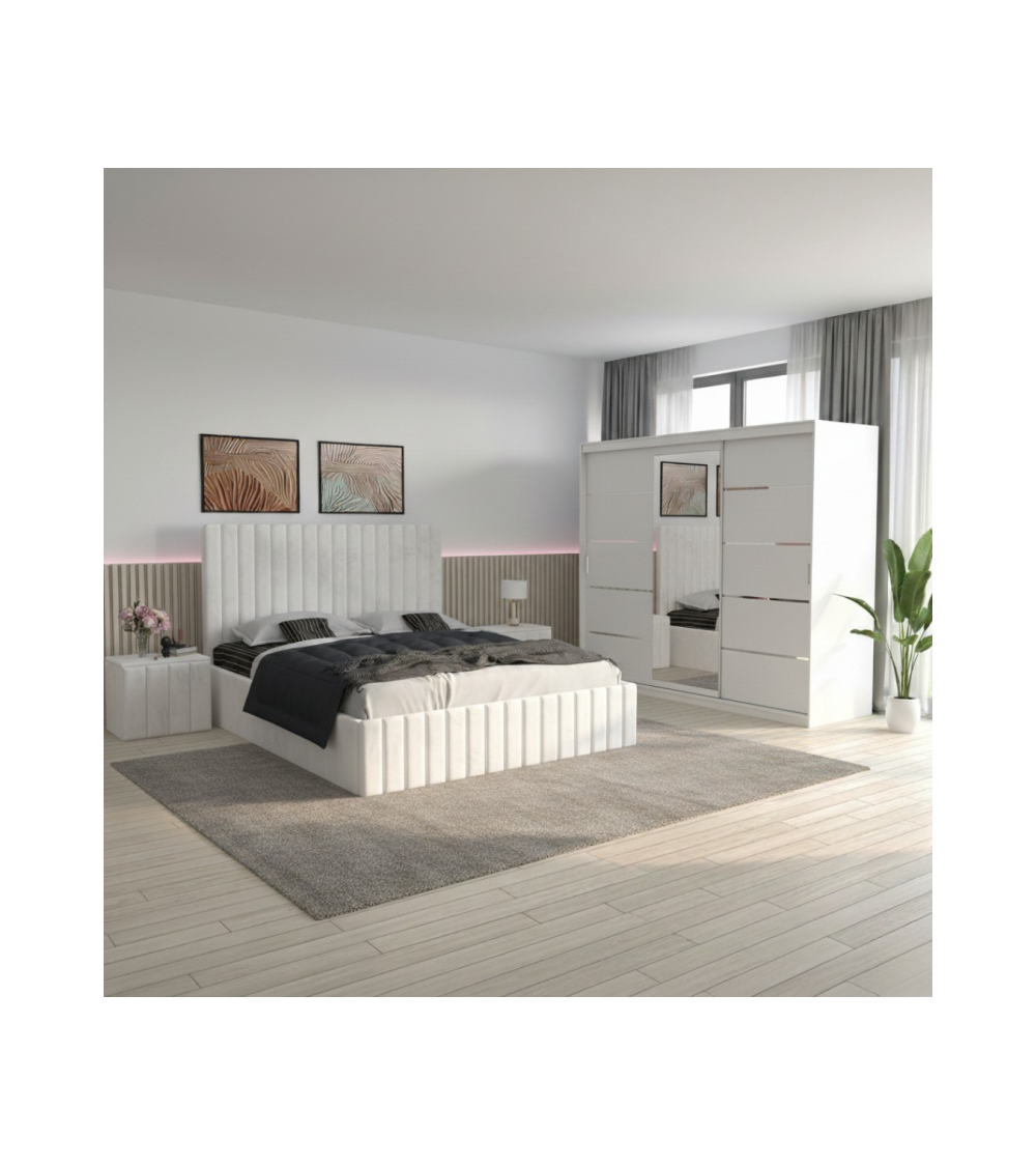Set Dormitor David Alb cu Pat Luca Alb + Saltea 160x200cm