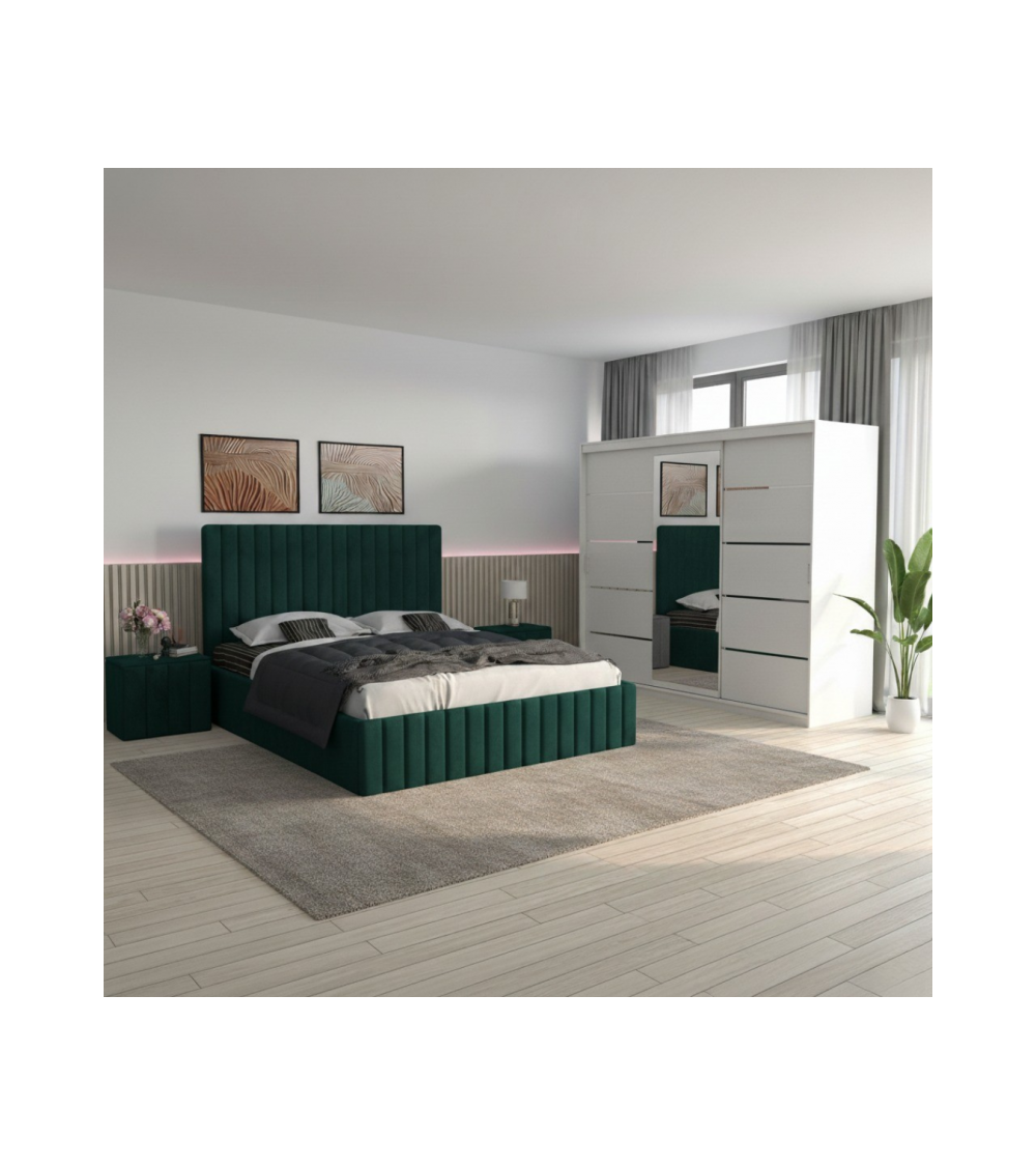 Set Dormitor David Alb cu Pat Luca Verde + Saltea 160x200cm