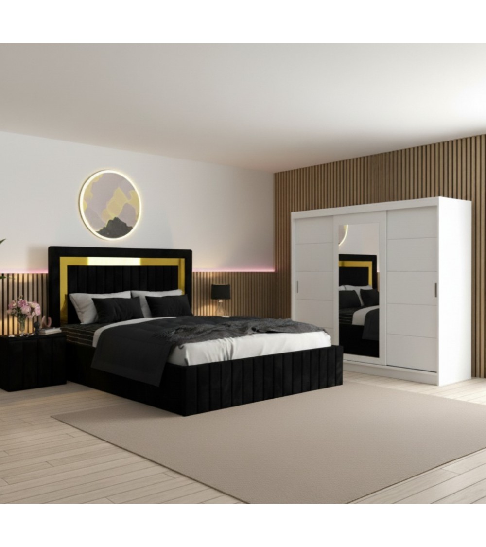 Set Dormitor Ianis Negru/Alb + Saltea 160x200cm