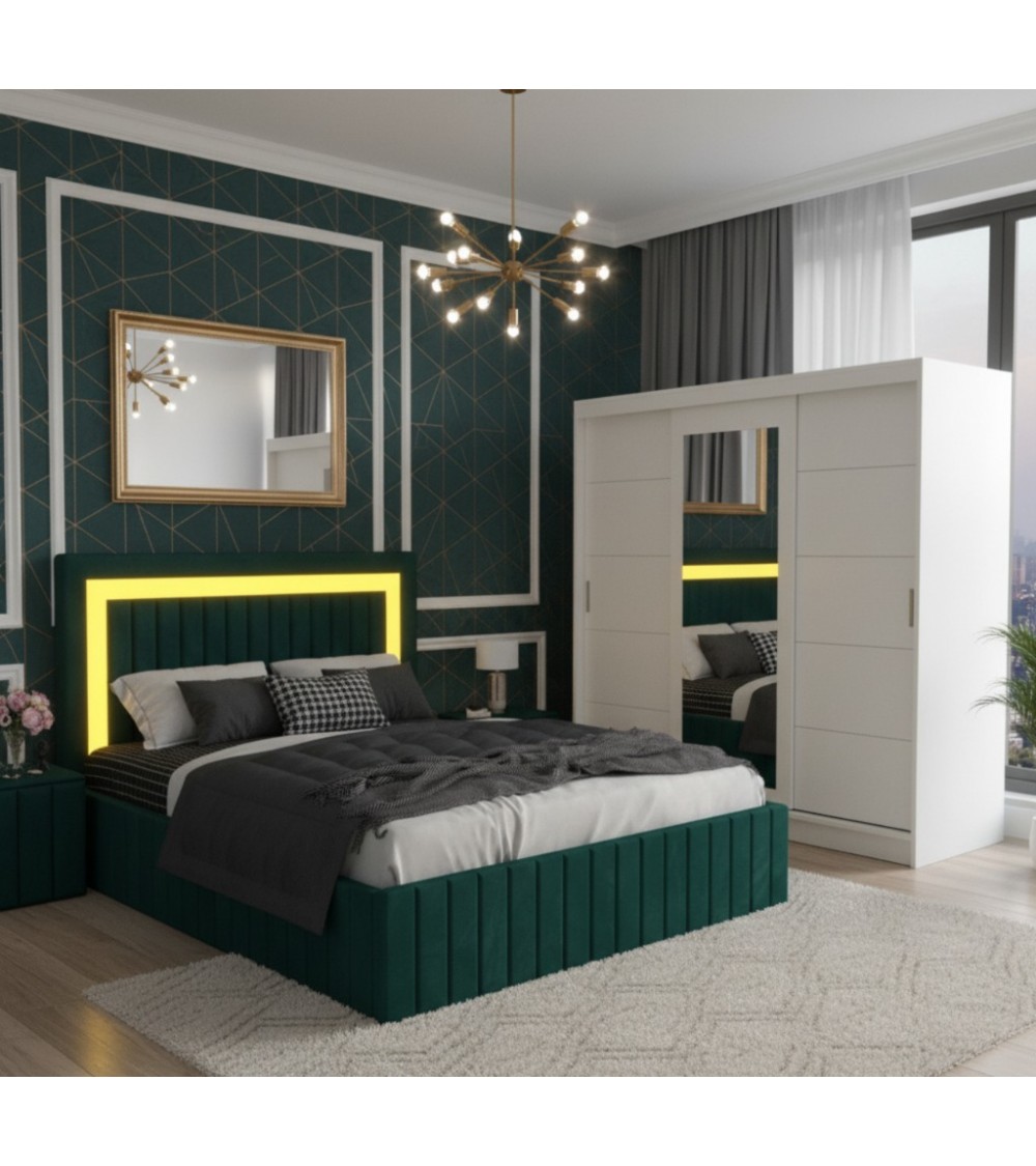 Set Dormitor Ianis Verde/Alb + Saltea 160x200cm
