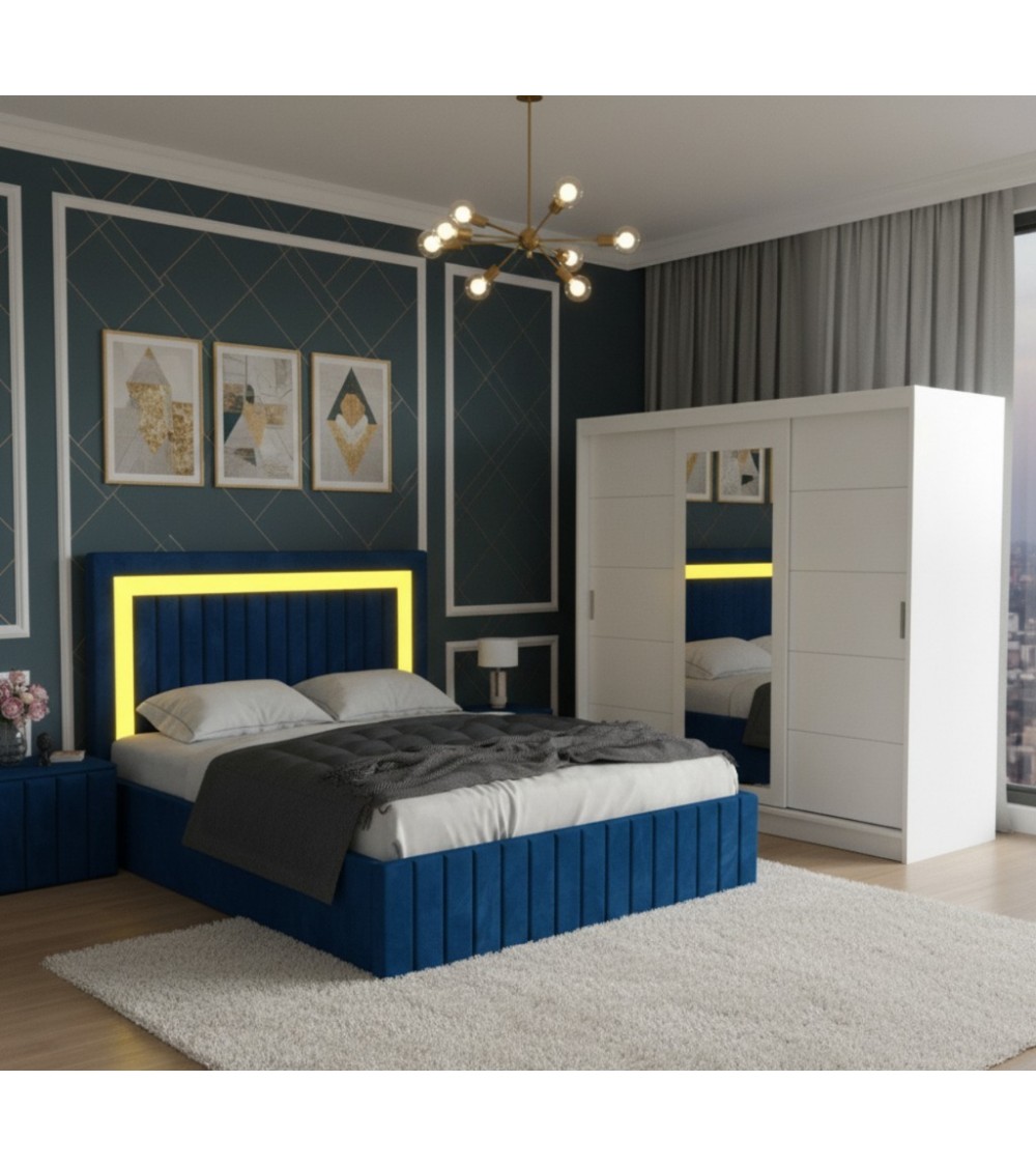 Set Dormitor Ianis Albastru/Alb + Saltea 160x200cm