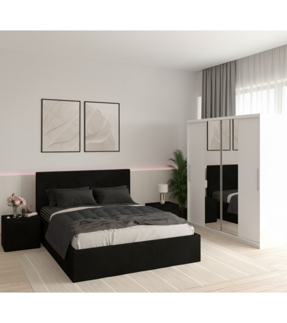 Set Dormitor Filip Negru + Saltea 160x200cm