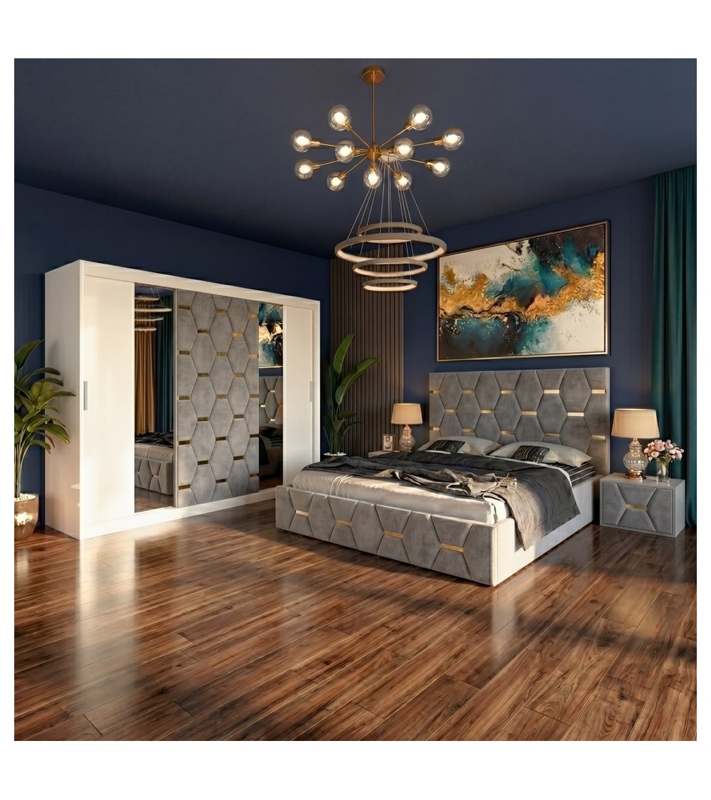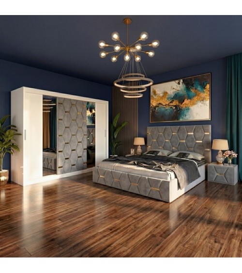 Set Dormitor Sofia Cu Noptiere Tapitate + Saltea 160x200cm