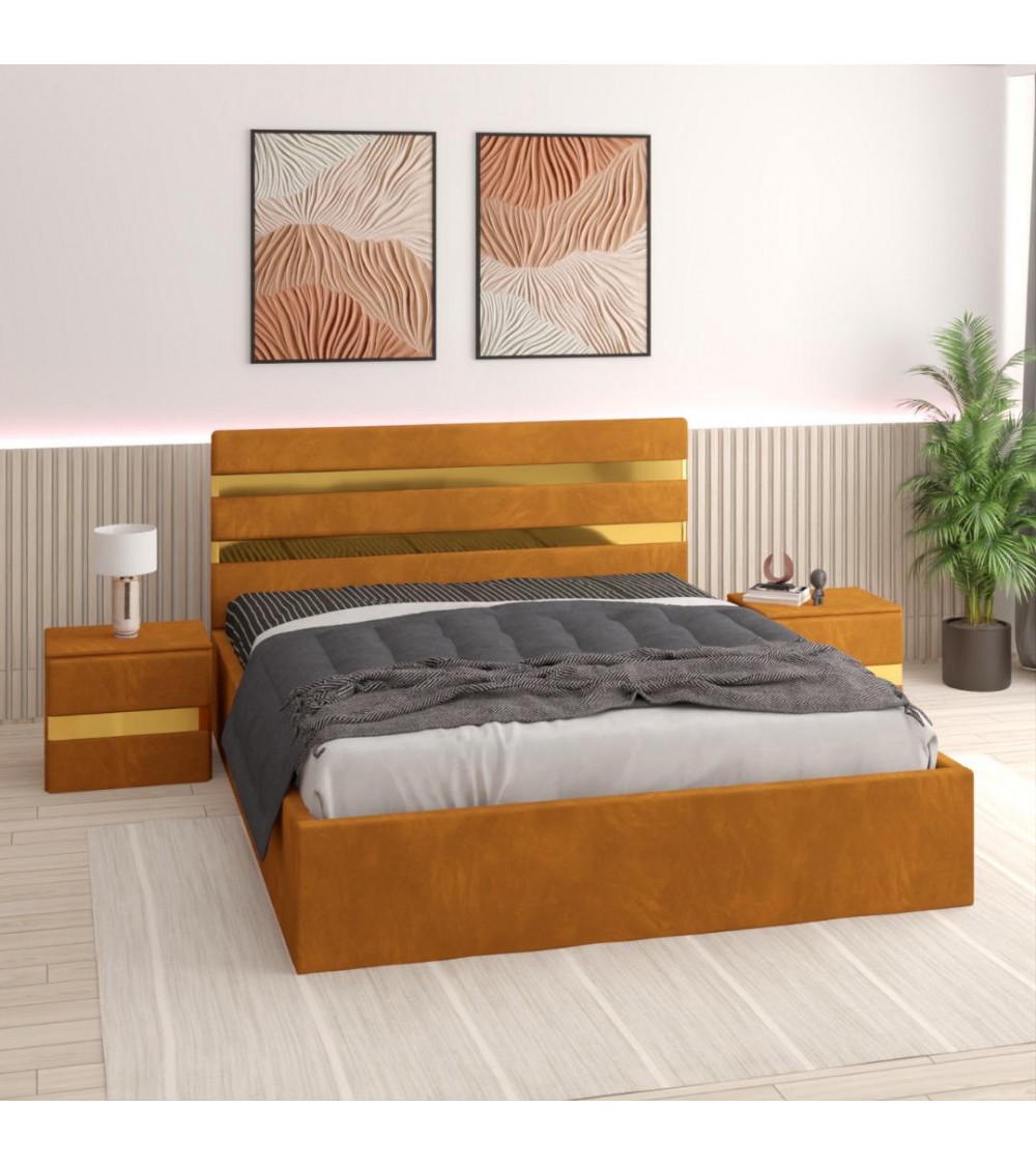 Set Pat Clio Complet Tapitat 160x200cm Cu Saltea 20cm Grosime Si 2 Noptiere Tapitate