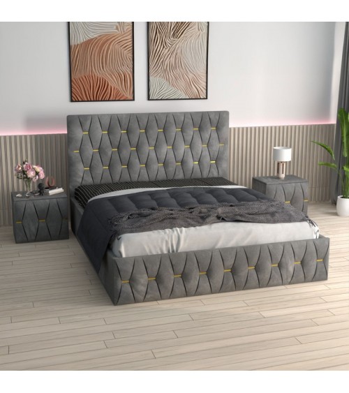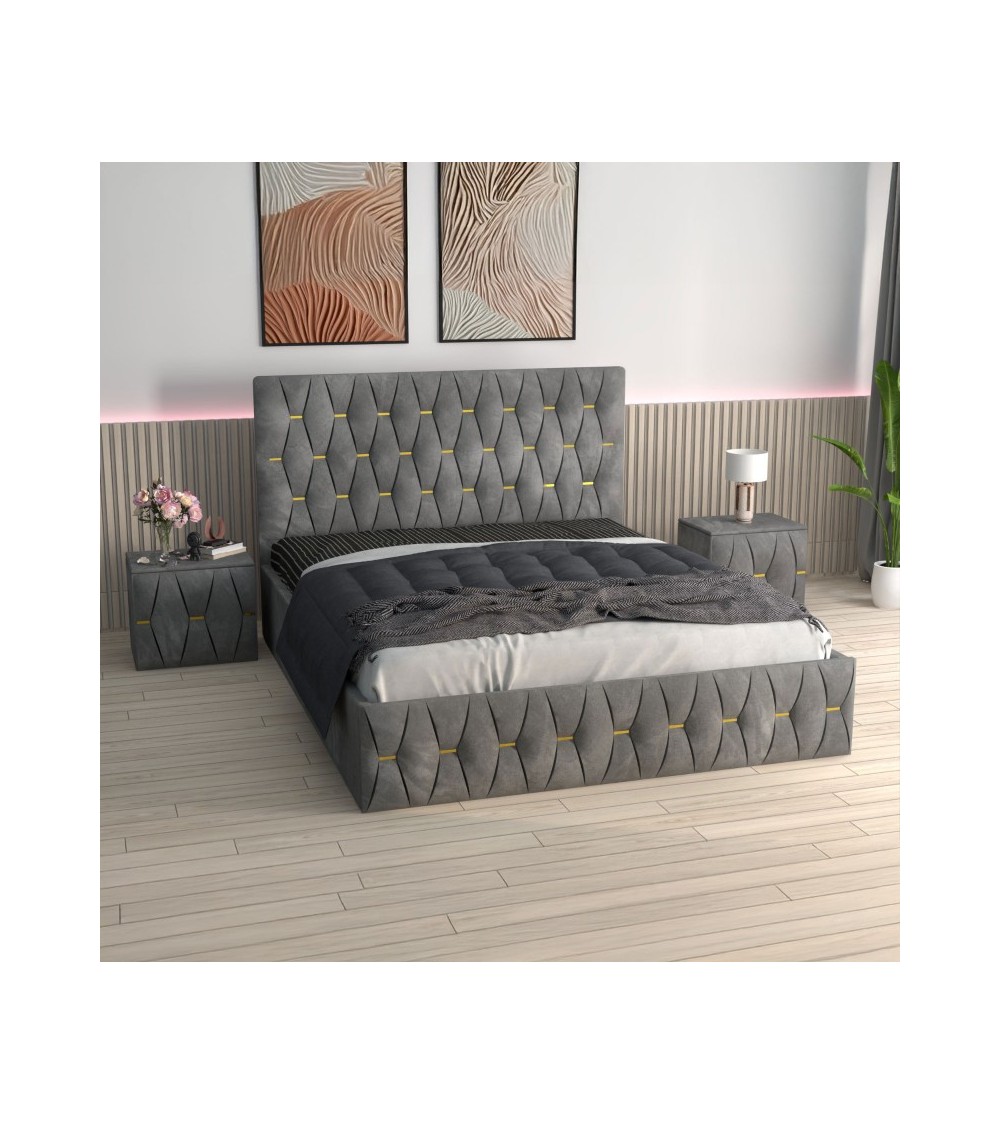 Set Pat Eric Complet Tapitat 160x200cm Cu Saltea 20cm Grosime Si 2 Noptiere Tapitate