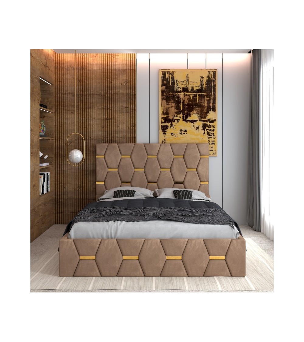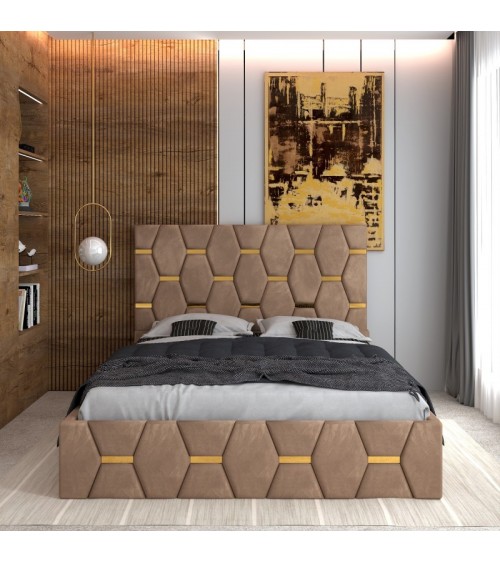 Set Pat Sofia Complet Tapitat 180x200cm Cu Saltea 20cm Grosime