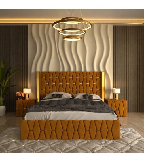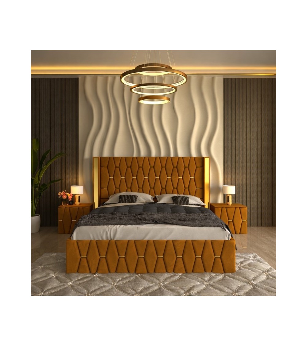 Set Pat Eric PLUS Complet Tapitat 140x200cm Cu Saltea 20cm Grosime Si 2 Noptiere Tapitate