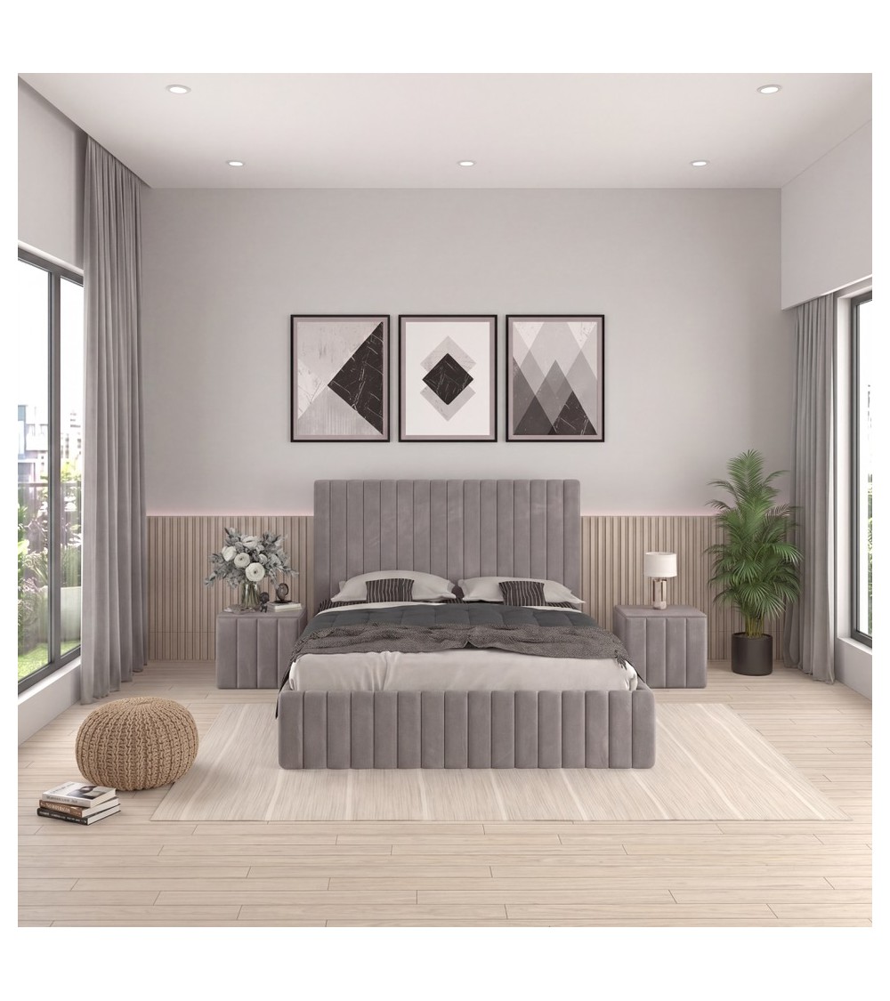 Set Pat Luca Complet Tapitat 180x200cm Cu Saltea 20cm Grosime Si 2 Noptiere tapitate